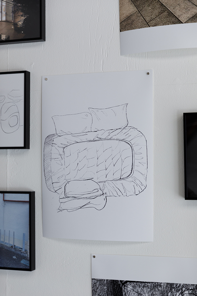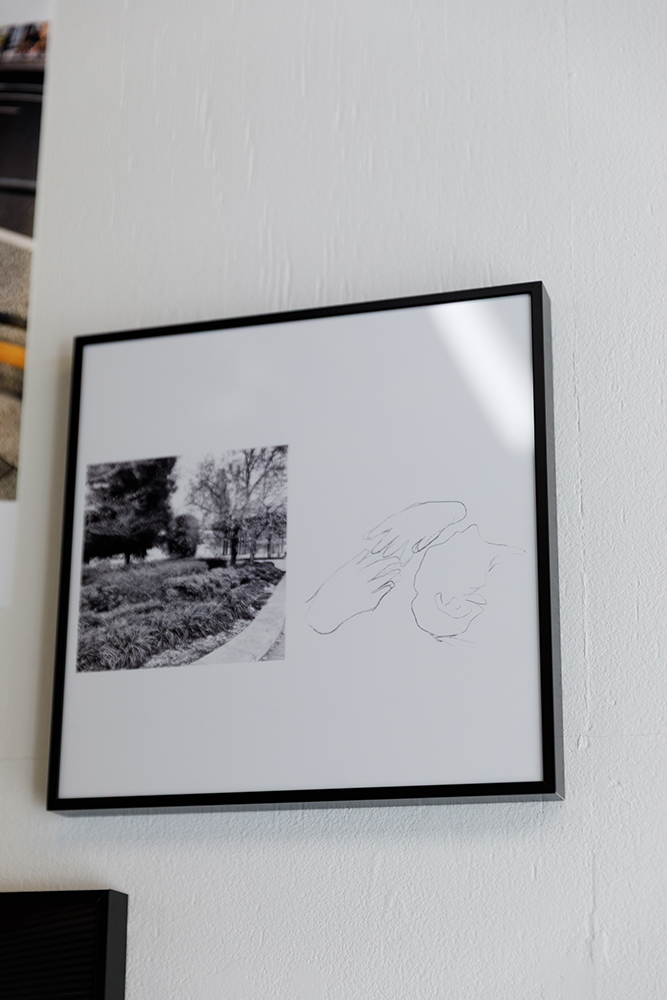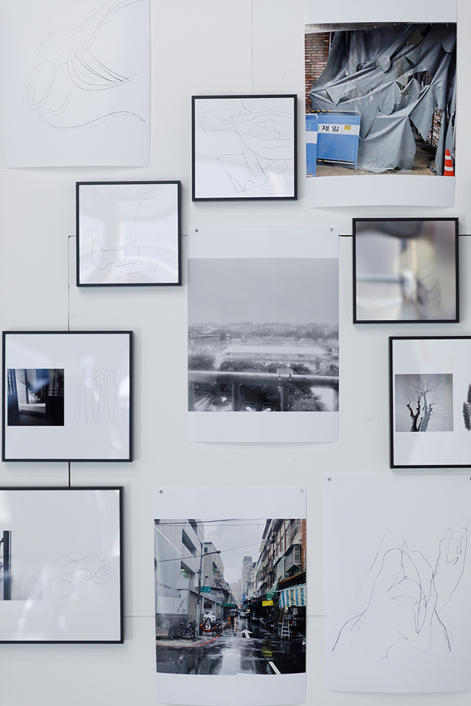 スナップショットのドローイング的な感覚、線描を始めてからは目線の収集という傾向が強くなっている、身辺にまとわりつく事物や事象の記録、身体の輪郭を浮かび上がらせる、記憶というより記録。