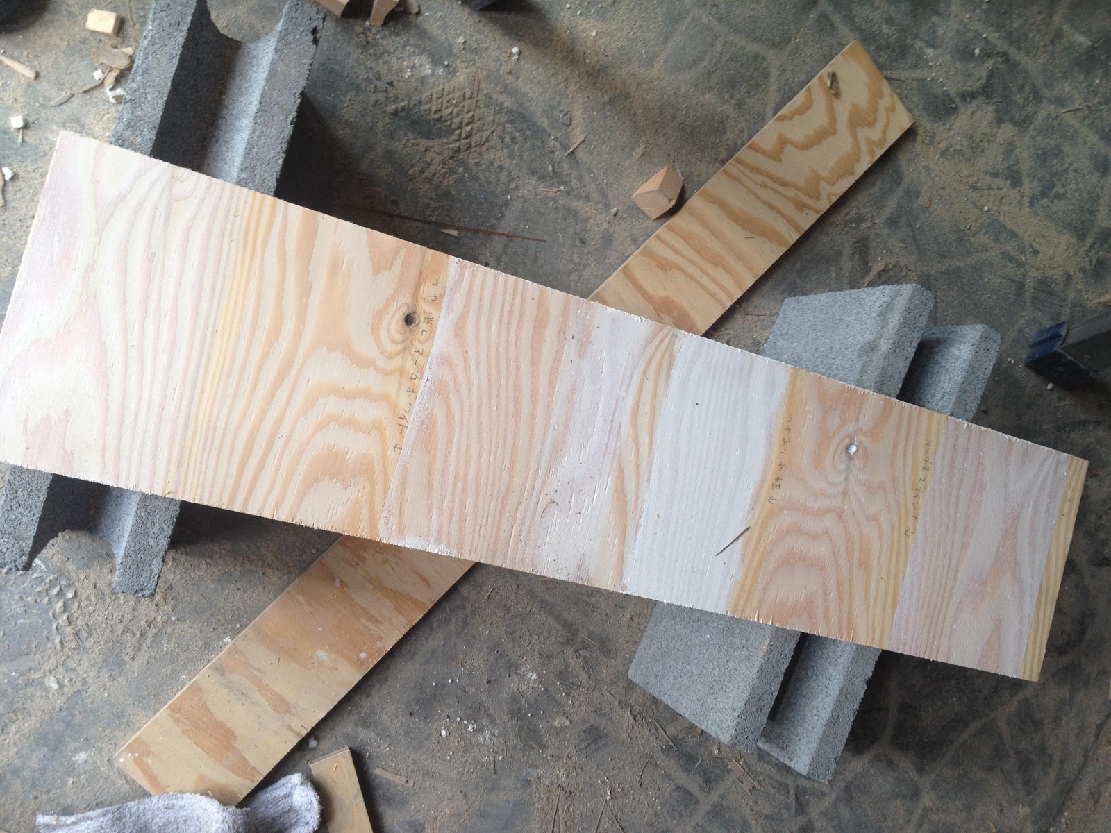 リノベーション:1F壁と色 先週の木曜日と金曜日は引き続き1F壁の作業を続けました。階段下の三角形の場所と、反対側の壁の一列目です。 そして翌日は、壁に使用する塗料をいくつか試してみます。 妄想も膨らみます。また、平日に作業をしていると、お隣の印刷所から印刷の音(?)が遅くまで聞こえてきました。平日と週末だとまた青葉荘の様子も少し違っているようです。 作るもの リノベーション