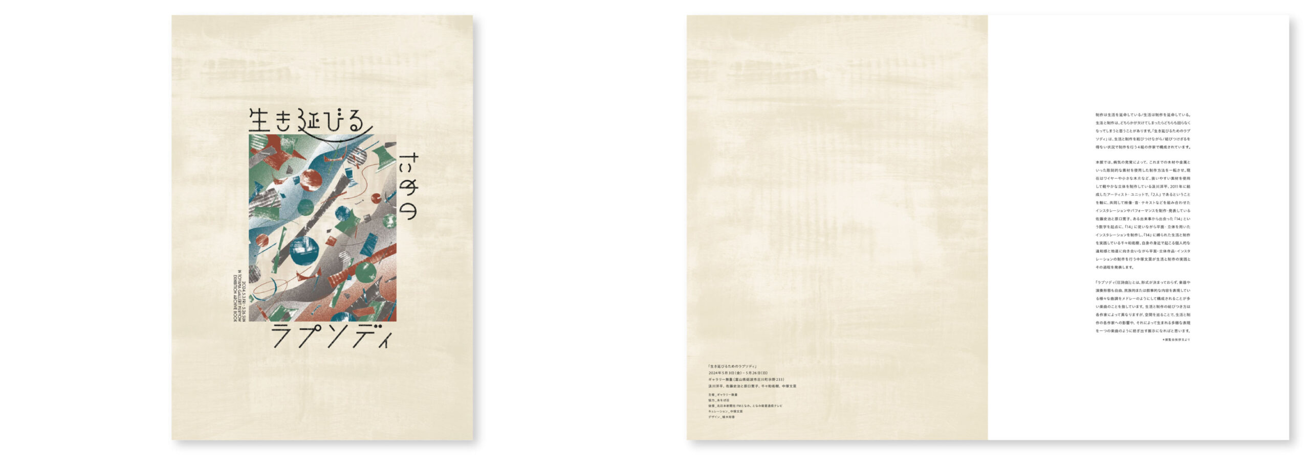 2024年5月に開催した「生き延びるためのラプソディ」(ギャラリー無量, 富山県砺波市)の記録集完成を記念してイベントを開催します。